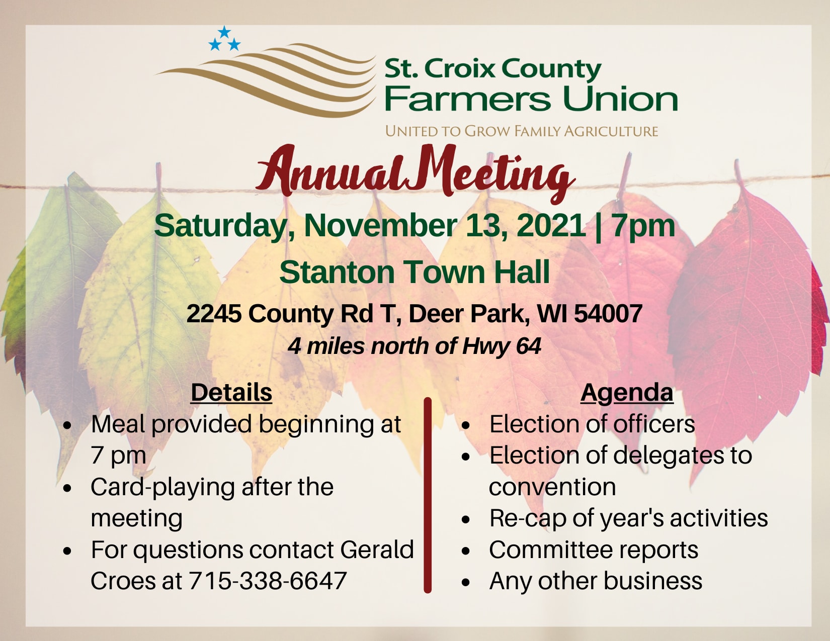 Join us for the WFU St. Croix Annual Meeting and card playing after the meeting!