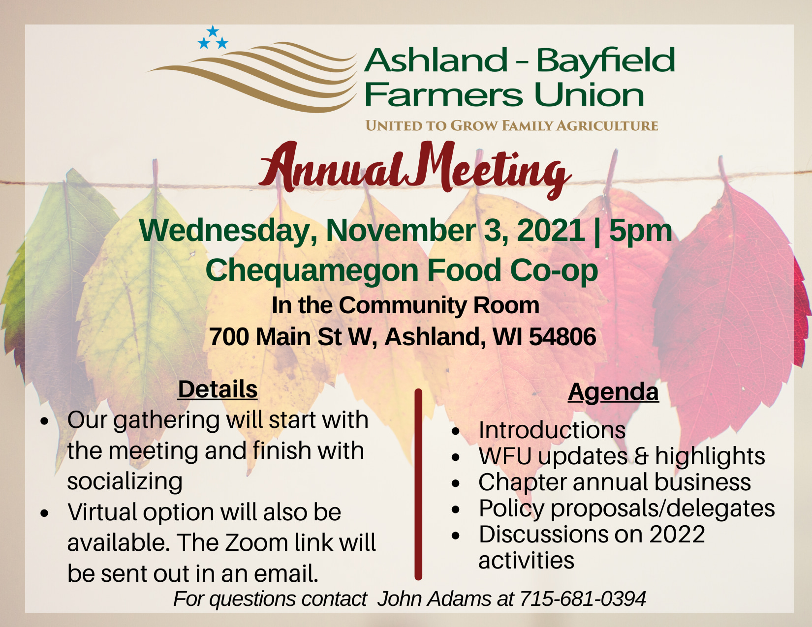 Come join us for the 2021 Ashland Bayfield Annual Meeting!