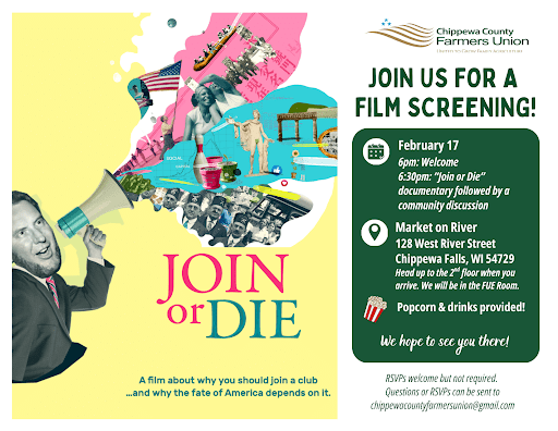 We will be gathering for a screening of the documentary Join or Die, which explores how “research into America's decades-long decline in community connections could hold the answers to our democracy's present crisis.”