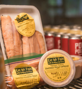 Fresh trout, smoked trout, and smoked trout spread are available year round at the farm.